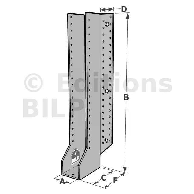 Les sabots GSE en acier galvanisé offrent une flexibilité grâce à des largeurs au choix selon les plages indiquées. Cette caractéristique permet de s’adapter parfaitement aux dimensions spécifiques des éléments de construction, garantissant une compatibilité optimale et une fixation stable.