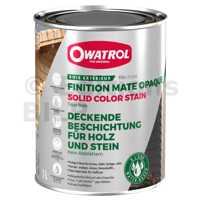 - Permettez à vos bois et métaux de résister aux agressions extérieures avec la lasure opaque SOLID COLOR STAIN MAT.