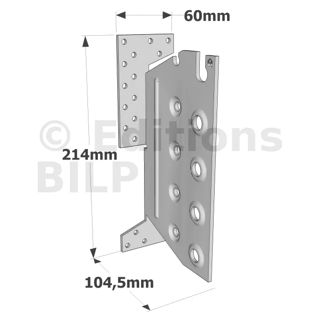 | Références | Dimensions poutre [mm] | Dimensions bois porteur [mm] | Dimensions [mm] | Perçages sur porteur | Perçages sur porté | ||||||||