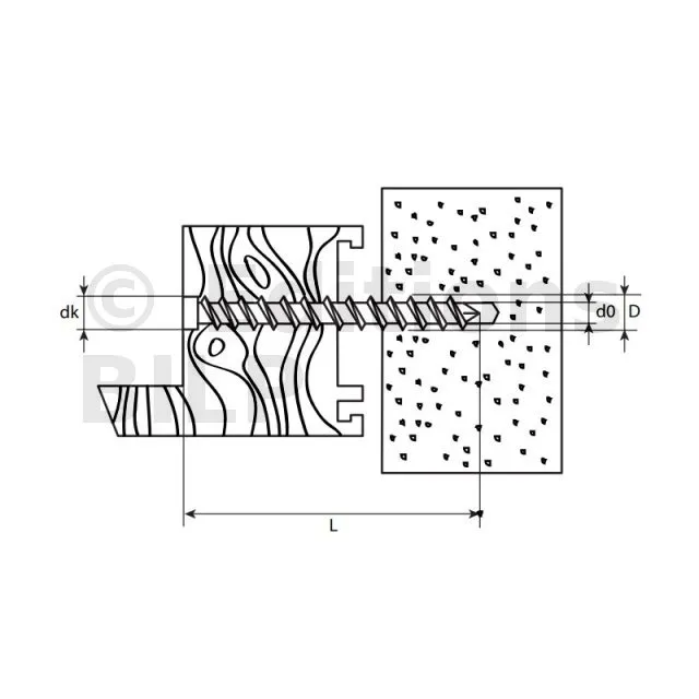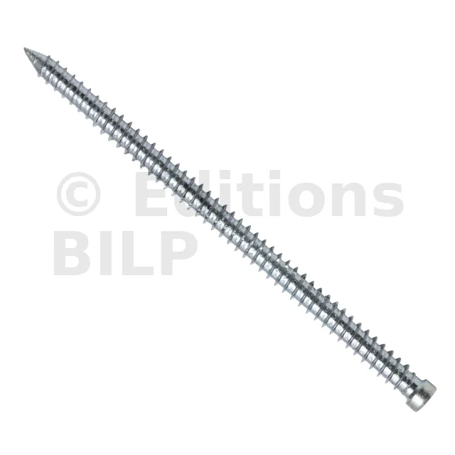 montage encastré dans des profilés bois. Pour une mise en œuvre de profilés en aluminium ou en plastique la vis cadre tête plate ("avec tête") sera plus adéquate. - Montage sans cheville.