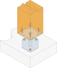 1. Placer la platine supérieure du pied de poteau sous le poteau,