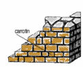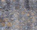 Avec une hauteur d’assise variable de 16 à 20 cm et des joints de 2 à 4 cm, les moellons utilisés peuvent avoir des longueurs différentes, à condition de maintenir une découpe de joint d’au moins 6 cm. Leurs lits et joints sont taillés grossièrement et présentent des arêtes dressées non rectilignes, avec quelques flaches tolérées, mais qui s’alignent perpendiculairement au parement. Le carrotin, posé dans l’axe d’un long moellon, facilite la découpe des joints. Nous pouvons placer deux plaquettes de même longueur pour obtenir la bonne hauteur d’assise. Une chandelle occupant 2 hauteurs d’assise peut être posée, à condition qu’elle soit placée comme le carrotin, et ce à raison d’une pour 2 m².