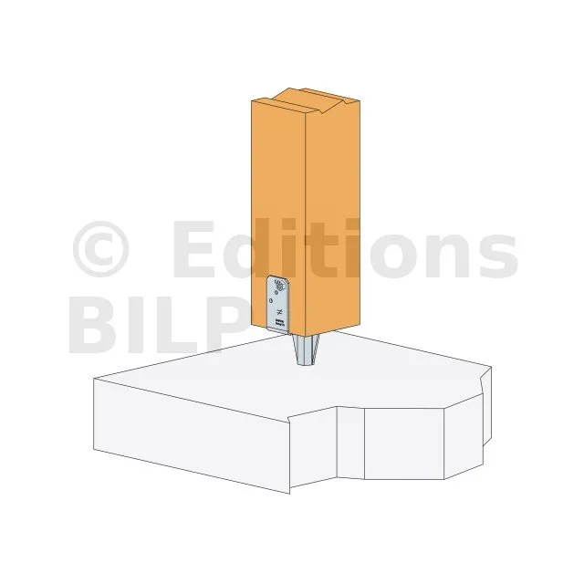 - Le pied de poteau peut aussi être noyé dans le béton au moment où ce-dernier est coulé.