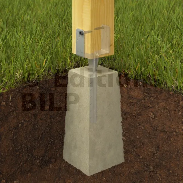 - Fixer le pied de poteau sur le poteau.