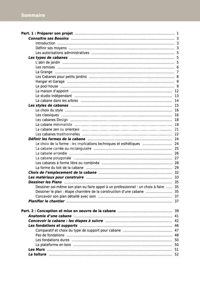 Des informations concrètes pour votre projet. Tous les secrets, tous les trucs et les astuces pour réussir votre cabane, abri, garage ou extension. Toutes les techniques, tous les produits vous sont décrits de façon objective et indépendante. Des vues détaillées vous décrivent toutes les étapes de la construction.