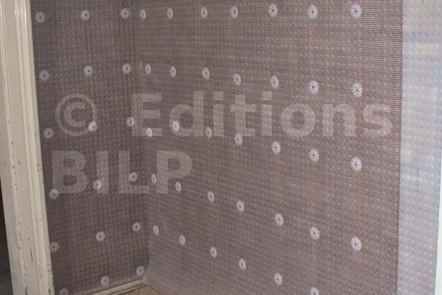 - MatériauNappe à excroissances en polyéthylène haute densité associée à un treillis en polyéthylène brun.