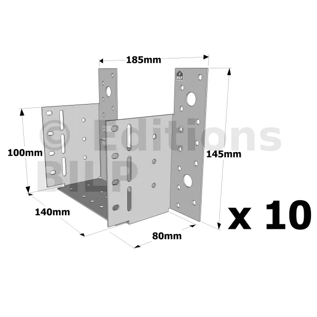 Les étriers pour croupe sont utilisés dans la fermette de section 38mm. Ils permettent la réalisation d‘une croupe en assemblant les demi-fermes d‘arêtier et d‘empannon. Les modèles différent suivant le type de mise en œuvre.