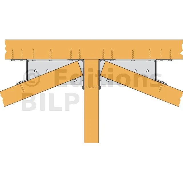 Les étriers pour croupe sont utilisés dans la fermette de section 38mm. Ils permettent la réalisation d‘une croupe en assemblant les demi-fermes d‘arêtier et d‘empannon. Les modèles différent suivant le type de mise en œuvre.