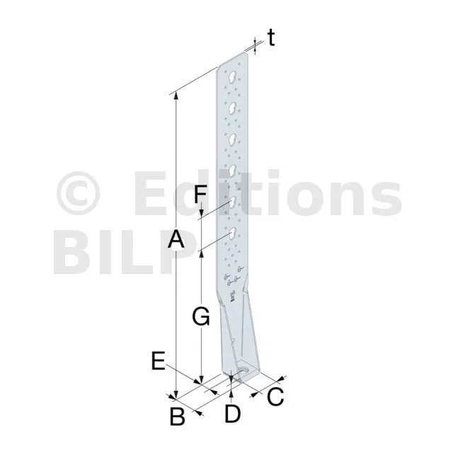 Ancrage pour montant d’ossature 64x403x56mm épaisseur 2.8mm - Réf. HTT5
