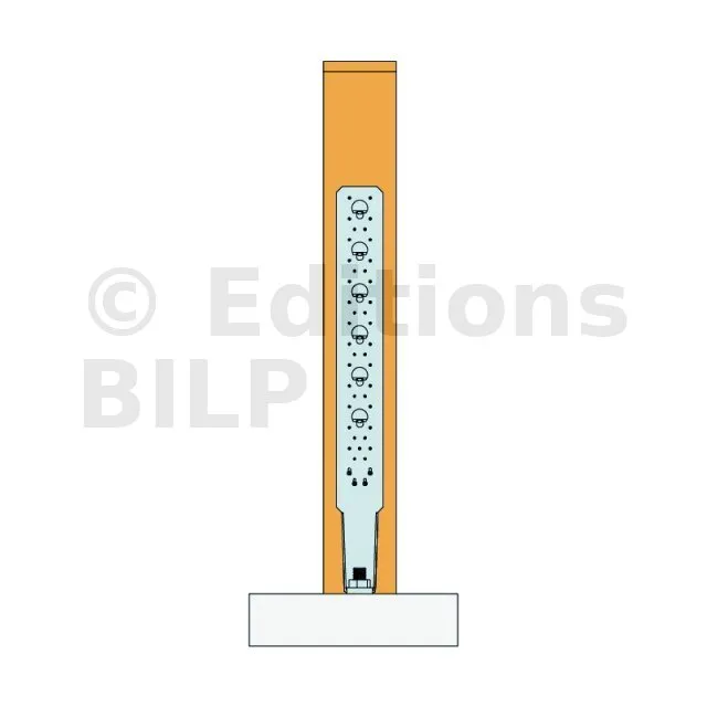 Cet ancrage reprend des efforts de traction dans différentes configurations. Les perçages de pointes permettent d‘adapter la fixation en fonction des configurations : utilisation en travaux neufs, réhabilitation pour le renforcement des structures existantes.