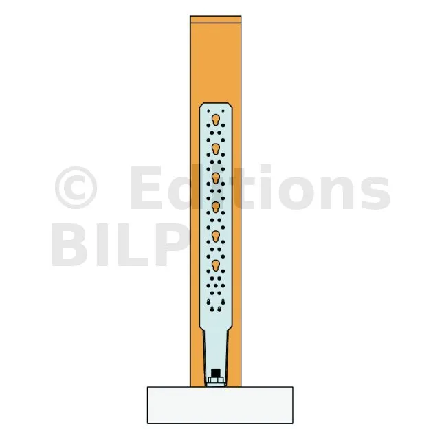 - La surface totale d‘appui de l‘ancrage doit être en contact avec le montant, et peut être en contact avec le support en pied.
