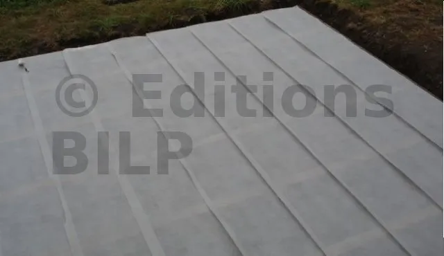 Un trou réalisé à la bêche permet un minimum de béton. Le réglage s’effectuera soit à la règle métallique et un niveau à bulle soit au laser. Ce réglage doit être très soigné car les bois doivent reposer parfaitement sur les plots. Il y a la possibilité de régler les plots 1 à 2 cm plus bas et de faire reposer les bois sur une couche de mortier et de mettre à niveau les bois de 10 x 10. Cette méthode paraît plus judicieuse.