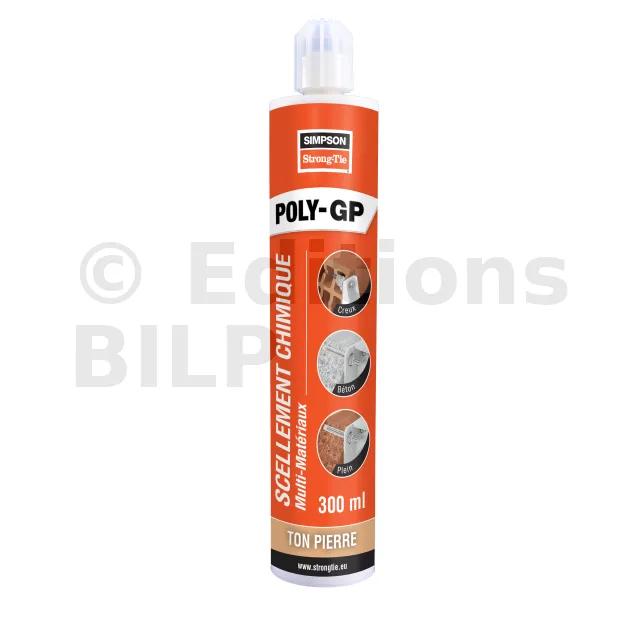 La résine multi-matériaux POLY-GP est un ancrage chimique permettant de fixer les tiges filetées dans le béton C20/C25 à C50/60 et toutes les maçonneries creuses et pleines.