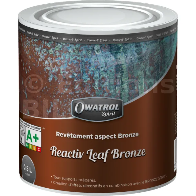 Offrez un aspect bronze à vos murs et autres supports pour leur donner une touche plus moderne et élégante avec le revêtement Reactiv Leaf Bronze à utiliser en combiné avec l’activateur Bronze Spirit.