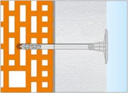 - Enfoncer le corps de la fixation de manière à ce que la rondelle de fixation soit orientée vers le matériau d’isolation thermique.