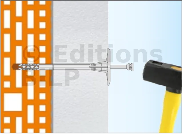 Cheville d’isolation à frapper avec clou en plastique pour isolants thermiques rigides - petite profondeur d’ancrage