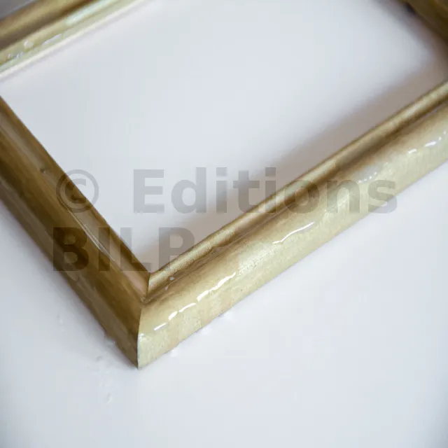 - Il est possible quand l’effet final est sec mais non recouvert d’un vernis de protection, de créer des effets vieillis comme sur la photo. Il suffit de passer de l’eau très chaude sur certaines parties du support et de retirer la finition par zonage.