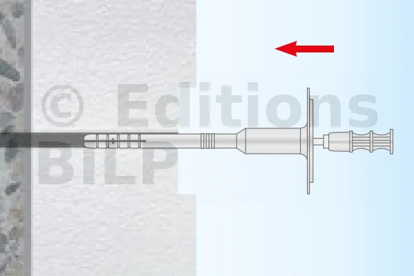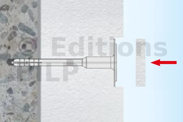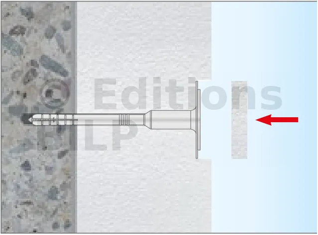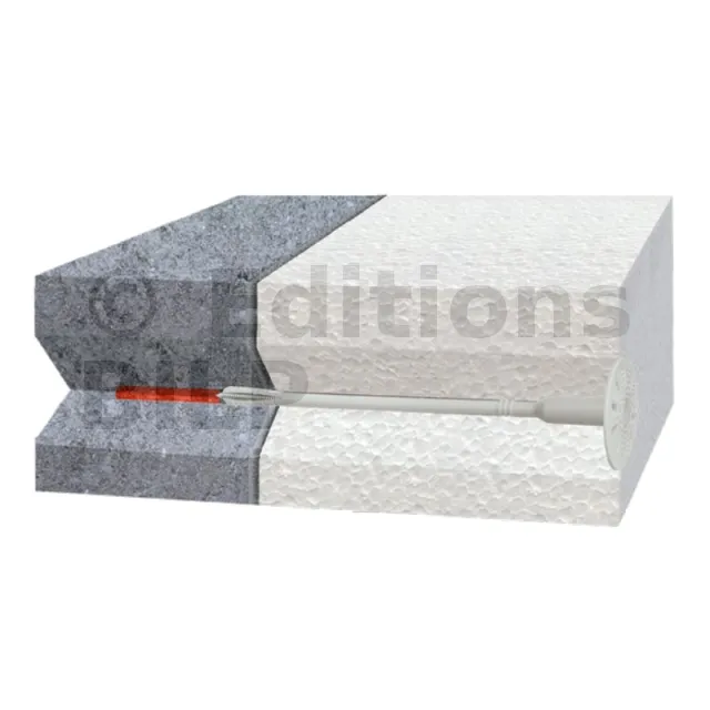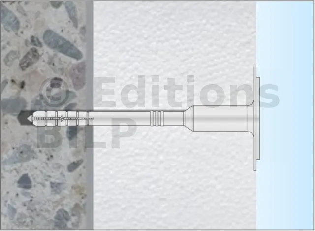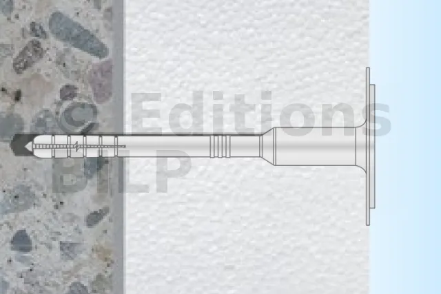- Embout du clou en métal plastifié : grâce à sa faible conductivité thermique (0,002 W/K), la cloison bénéficie d’une amélioration du coefficient de transfert de chaleur global, tout en assurant la protection contre la corrosion des clous.