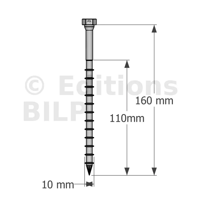 Vis connecteurs acier sur bois, SSH10.0X160 - Réf. 75157