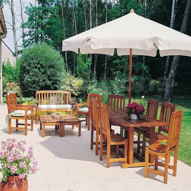 - Bois exotiques : teck et autres essences utilisées pour le mobilier de jardin hors Keruing.