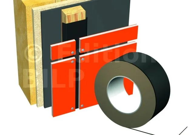 Bande d‘étanchéité et de protection pour chevrons, contre-lattes et liteaux en support de bardages ou panneaux de façade. Améliore l‘esthétique des parements en cachant l‘ossature secondaire (chevrons, contre-lattes ou liteaux).