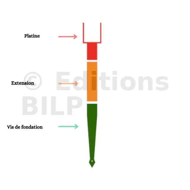 | Vis de fondation PRO | Charge admissible élevée (jusqu’à 5 kN/vis), acier galvanisé à chaud, compatibles rallonges M24 pour atteindre la couche « sol dur » quel que soit le terrain. |