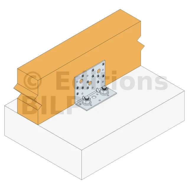 - Fixation bois/support rigide - type poutre/support rigideAile A : 12 - type : CNA Ø4.0x35 ou Ø4.0x50 mm ; Aile B : 2 - type : WA M12-104/5 - Assemblage avec 2 équerres