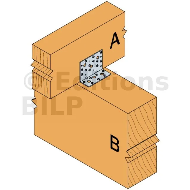 - Fixation bois/bois - type poutre/poutreAile A : 12 ; Aile B : 7 ; type : CNA Ø4.0x35 ou Ø4.0x50 mm - Assemblage avec 2 équerres