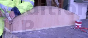 Le clouage du contreplaqué humide s’effectue lentement afin d’obtenir un cintre régulier. Il est conseillé de ne pas forcer, car le contreplaqué peut se casser facilement. Des petites pointes de 30 à 35 mm seront parfaites pour cette tâche.