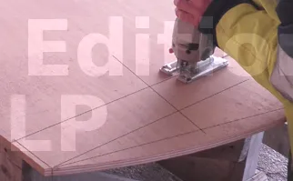 Après le traçage, procédez à la découpe des deux joues en contreplaqué de 15 mm à l’aide d’une scie sauteuse.
