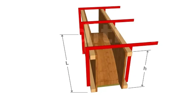 Les lattes sont découpées à la largeur du linteau moins deux épaisseurs de contreplaqué de 15 mm, soit 17 cm. Elles sont positionnées tous les 7 cm environ et clouées ou vissées aux joues. Elles servent de raidisseurs pour le contreplaqué supérieur de 5 mm.