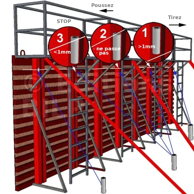|Important : à la fin de chaque coulage, il est crucial et vivement recommandé de replomber et de réaligner les ouvrages tant que le béton n’a pas pris. Cela permettra un ajustement parfait. Le lendemain, il sera trop tard.|