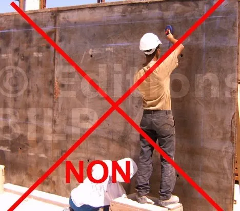 Le nettoyage et l’huilage des banches ne doivent pas être effectués à l’emplacement du mur à couler. Une zone de préparation est nécessaire à cet effet.