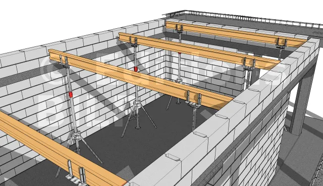 L’étaiement est l’élément de soutien provisoire maintenant les coffrages à la hauteur voulue, avant le décoffrage.