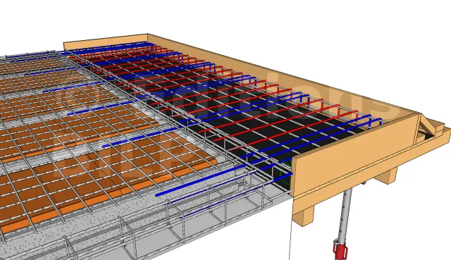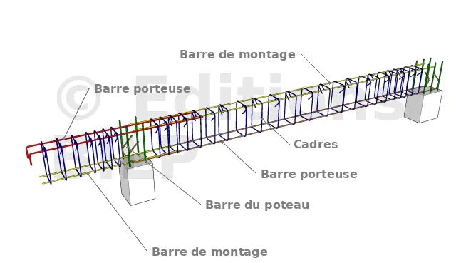 Une couche de treillis inférieure sera placée sur des cales d’enrobage. Les armatures principales se trouvent dans la partie supérieure (partie haute).
