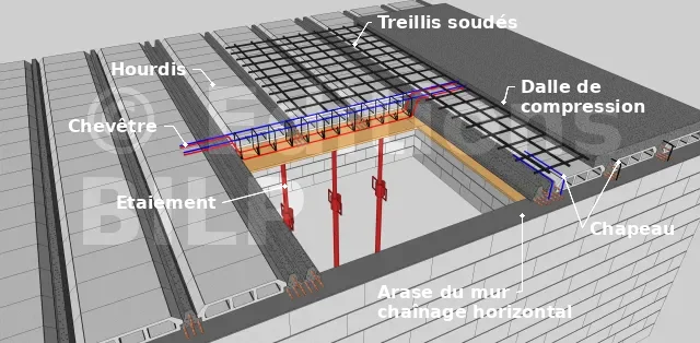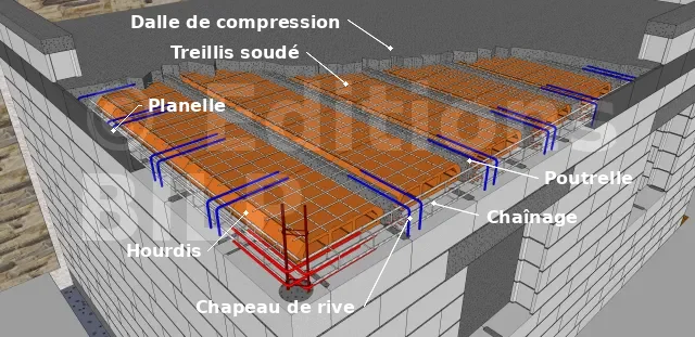 - d’une dalle de compression (en béton de 4 à 6 cm).