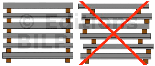 Il s’effectue avec les poutrelles en béton armé posées à plat sur des lattes bien superposées. Pour les poutrelles précontraintes, installez uniquement 2 calages aux extrémités (à 50 cm). Pour les poutrelles en béton armé plus longues, mettez 3 ou même 4 calages toujours alignés dans le sens de la hauteur.