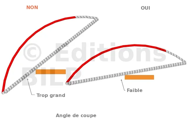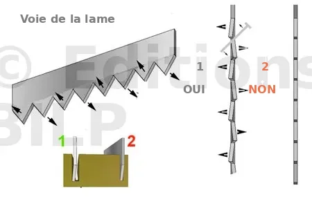 Comme le marteau, la scie est un outil indispensable au métier. La scie doit être en parfait état de marche et doit être entretenue. Elle ne doit pas être stockée n’importe où, afin de ne pas abîmer les dents et que la lame ne rouille pas sous l’humidité. La lame doit avoir de la voie, c’est à dire les dents doivent être écartées pour pouvoir coulisser dans la coupe. Si ce n’est pas le cas, écarter les dents à l’aide d’une pointe ou d’une pince à dévoyer.