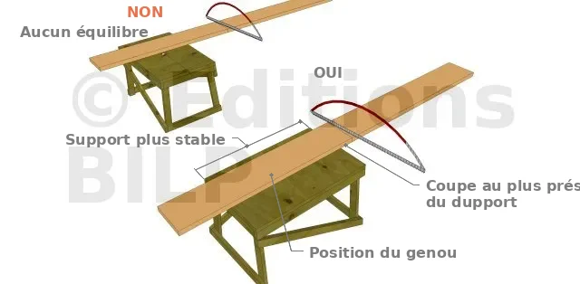 Pour une grande précision il ne faut pas tracer plusieurs coupes sur la même planche car les épaisseurs de coupes donneront un manque de quelques millimètres, ni tracer à l’aide d’une planche déjà coupée.Reprendre son mètre.