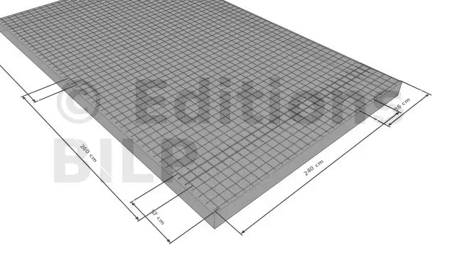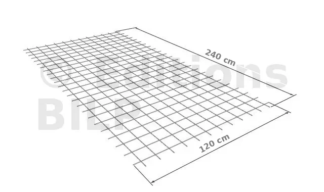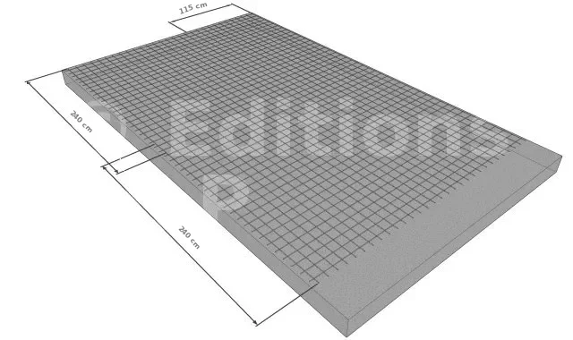 Nous posons des panneaux de treillis soudés dans une dalle de 300 cm x 500 cm. Ensuite, nous identifions les coupes à effectuer et calculons le nombre de panneaux requis.