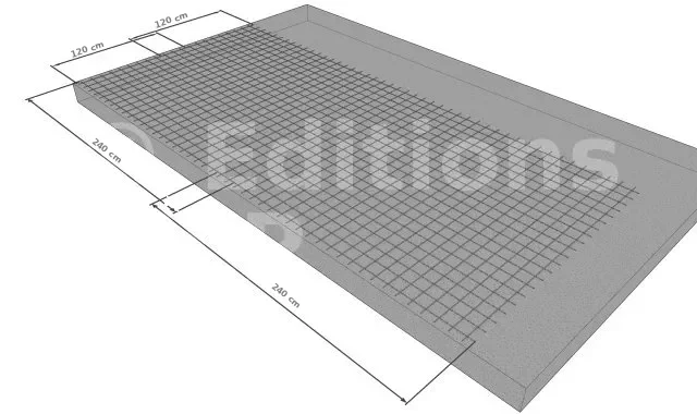 Nous posons des panneaux de treillis soudés dans une dalle de 300 cm x 500 cm. Ensuite, nous identifions les coupes à effectuer et calculons le nombre de panneaux requis.
