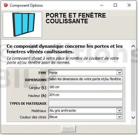 Pour avoir exactement la forme, les dimensions avec les matériaux de vos portes et fenêtres coulissantes, il est nécessaire d’entrer les bons paramètres ainsi que les bonnes dimensions.