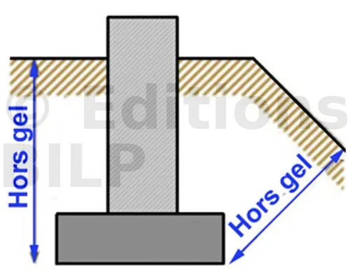 Les textes de D.T.U indiquent que les fondations doivent être descendues à une profondeur telle que leur base soit hors d’atteinte de la gelée.