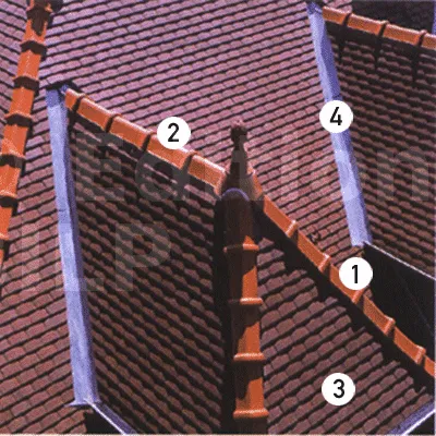 1. Bande en mortier gras couvre-joint et calfeutrement de souche de cheminée, ou en longueur au pied d’un mur saillant du toiture servant d’étanchéité.