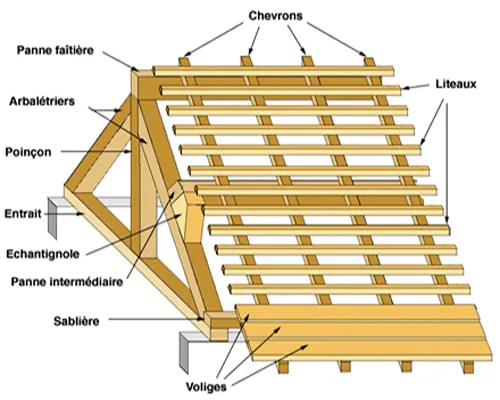 Toute partie de bois dépassant le nu du mur comme les chevrons et les pannes en bas de pente.