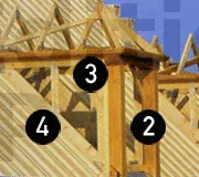 1. Pièce de bois allant de l’entrait au poinçon supportant les pannes en angle saillant (inverse de la noue).