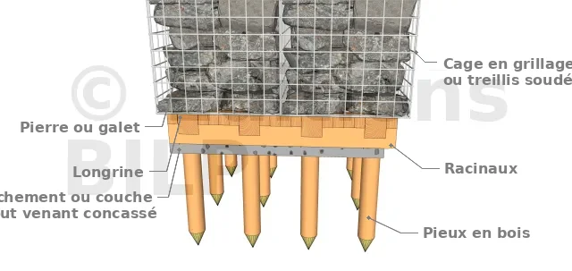 - Les pieux en bois ont pour rôle de renforcer le sol de fondation ;