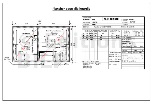 L’épaisseur du plancher (a) est de [trou]"16 cm"[texte], et celle du plancher (b) est de [trou]"20 cm"[texte].