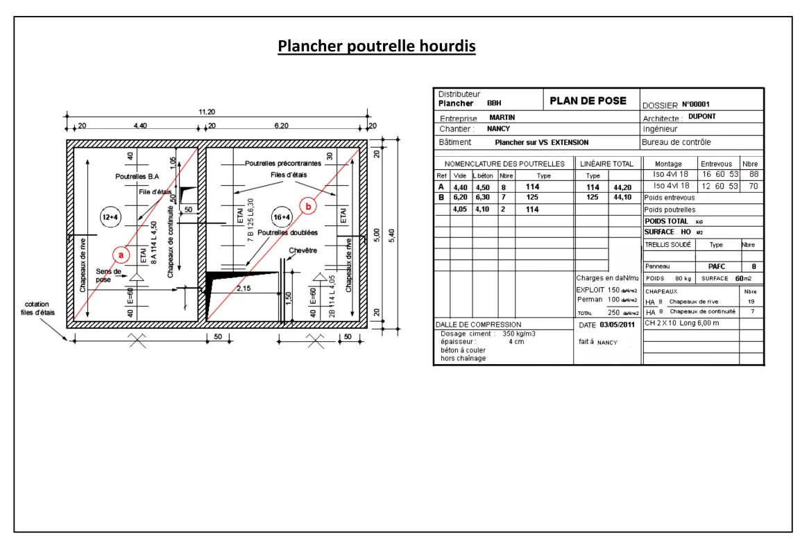 4. Quelle est la hauteur des hourdis dans la zone (a) et (b) ?