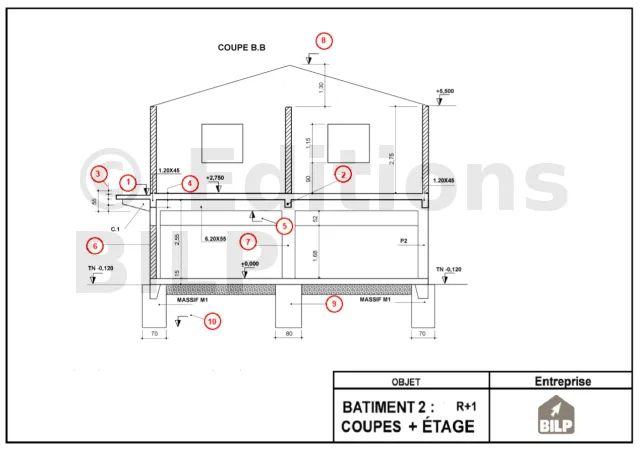 1. Dans la coupe B-B de l’étage que représente les parties grises sur les murs ?
